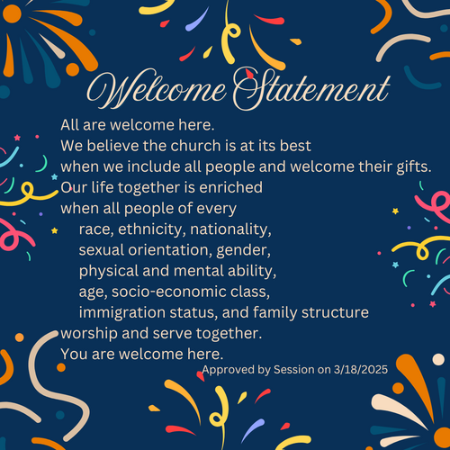 Our congregation has accepted the PC(USA)’s invitation to follow Jesus’ teachings in Matthew 25:31–46 by becoming active disciples and making a difference in our community and the world.