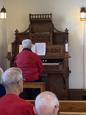 The Pop-up Choir practices at 8:30 a.m. and sings in worship about one Sunday a month. All voices are welcome!